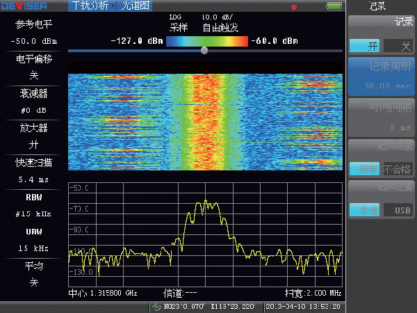 ● 光譜圖適合對信號頻譜的長期監(jiān)測,以及對連續(xù)、間歇和跳頻信號做識別,并記錄發(fā)生的時間;在監(jiān)測的同時,也可做數(shù)據(jù)記錄和回放。