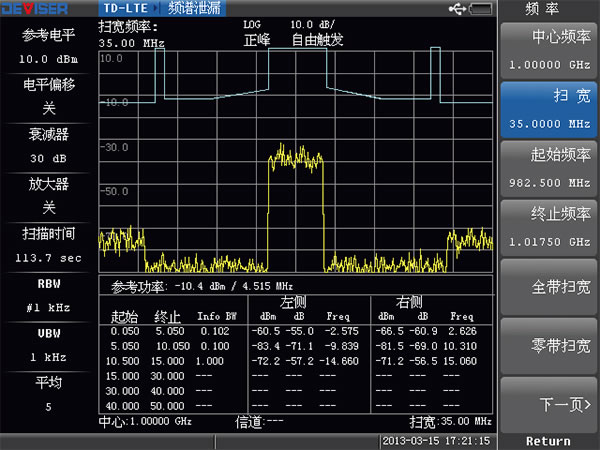 ● 功率一鍵測量:信道功率、占用帶寬、鄰道功率、場強測量;