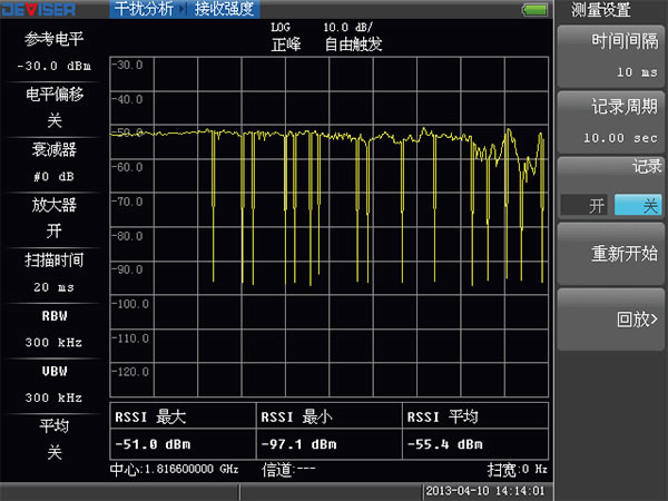 ● 通過表頭和數(shù)據(jù)顯示信號大小,單位為dBm或W,并提供最大最小值記錄。