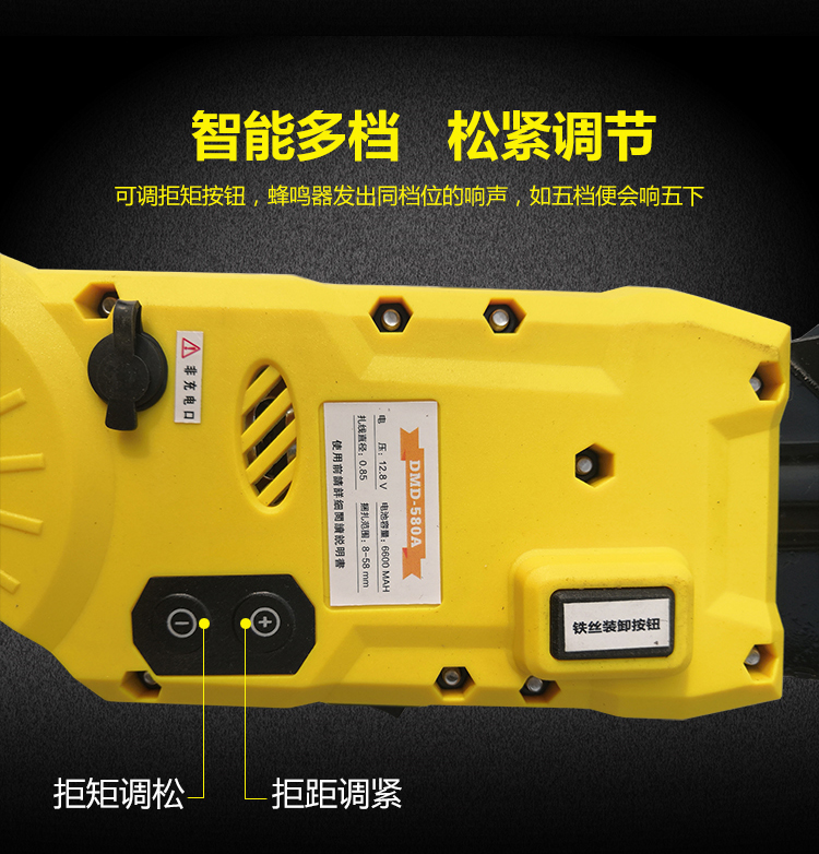 12、扭矩調(diào)節(jié):使用中如發(fā)現(xiàn)有扎不緊或易斷現(xiàn)象,可以調(diào)整扭矩調(diào)節(jié)按鈕,扎不緊按“+”號一下即扭矩增加一檔(出廠設(shè)置為5檔),蜂鳴器會發(fā)出檔位對稱的叫聲,如10檔會連續(xù)響十下,以此類推。過緊(易斷)調(diào)節(jié)“-”號,調(diào)整到合適為止。