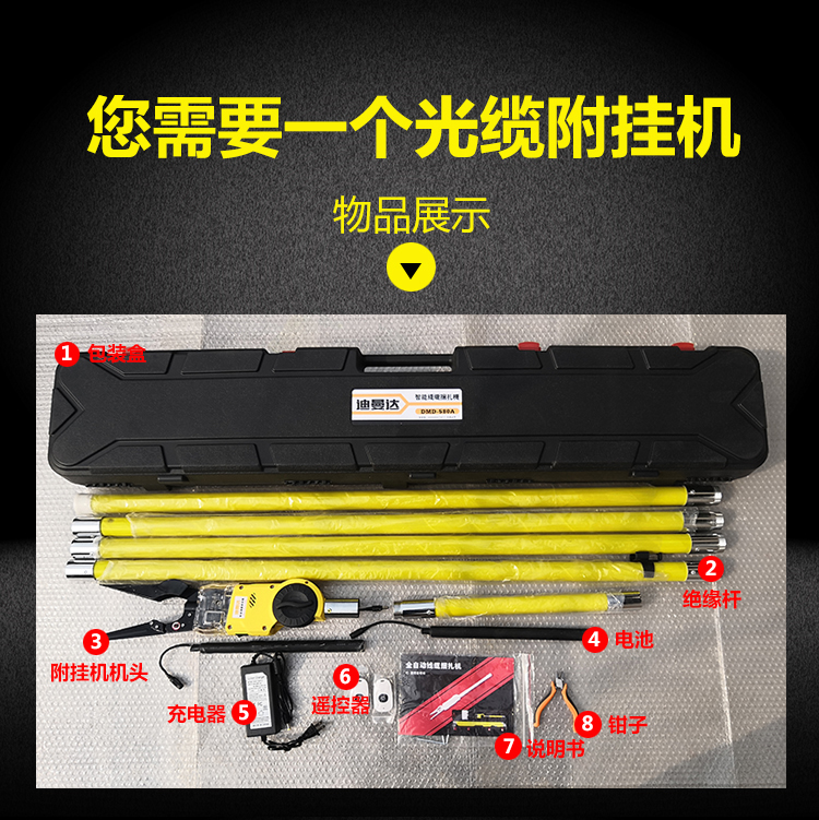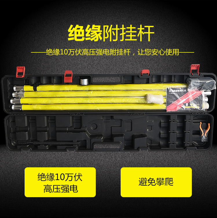 附掛桿:可絕緣10KV,材質(zhì)由絕緣玻璃鋼環(huán)氧管構(gòu)成,四根90cm長桿,一根43cm電池桿。
