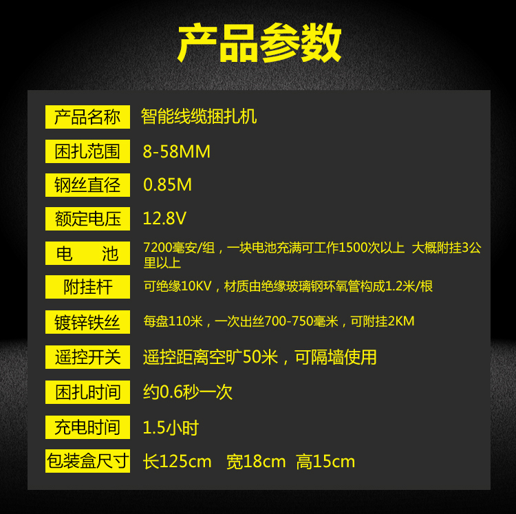 電壓:12.8V 捆扎范圍:8-58 mm 捆扎時間:0.8秒每次
